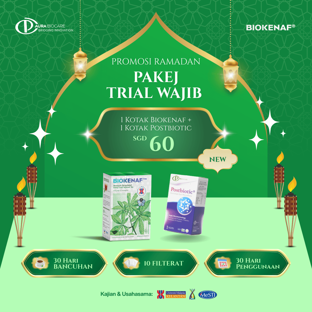 Biokenaf® diformulasi untuk bantu rawat masalah diatas. Sekiranya ada gastrik, betulkan masa makan terlebih dahulu sebelum amalkan teh herba Biokenaf®